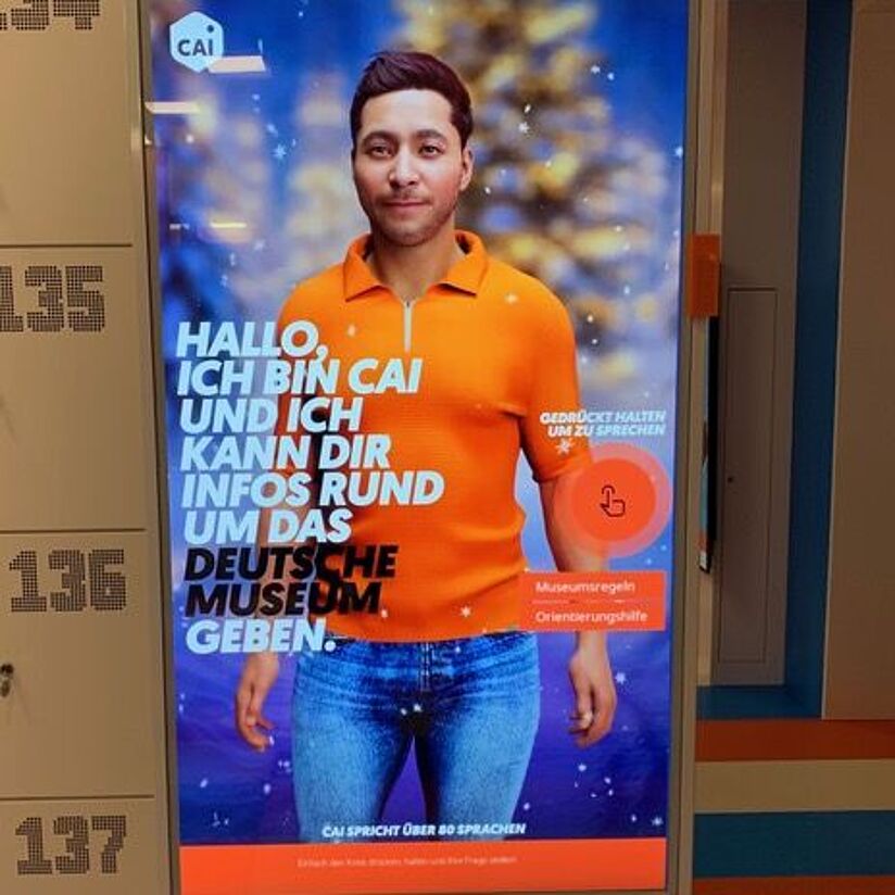 Was gibt es im Deutschen Museum Bonn zu sehen? Was hat es mit der »Mission KI« auf sich? Und gibt es Regeln, die man beim Museumsbesuch beachten sollte? CAI, der von der Augsburger CAI - Conversational AI GmbH entwickelte KI-Assistent, kennt die Antwort! Einfach per Touch das integrierte Mikrofon aktivieren und schon kann man mit CAI sprechen: Dank eingebundener Datenbanken und APIs hat CAI viele hilfreiche Tipps für den Besuch im Deutschen Museum Bonn auf Lager und kann spezifische Auskünfte über die Ausstellung und die Workshop-Angebote geben. Und das ohne Sprachbarriere: CAI beherrscht mehr als 80 Sprachen, in denen er mit den Besuchenden kommunizieren kann.