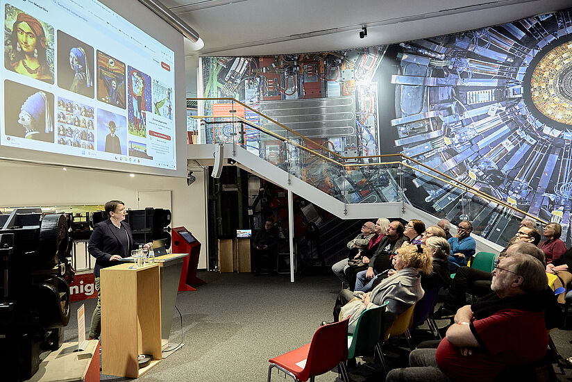Doch wie sieht es bei einem Werk, das durch eine solche Mensch-Maschine-Kollaboration entstanden ist, eigentlich mit der Urheberschaft aus? Über die aktuelle Rechtslage in Sachen KI und Urheberrecht klärte Anke Fischer-Appelt (Leiterin Wissenschaftszentrum Bonn) das zahlreich zur Eröffnung der Ausstellung erschienene Publikum in einem Kurzvortrag auf. »KI kann kein Urheber sein, KI ist Werkzeug«, stellte sie klar. Erschafft man mittels KI ein neues Werk, sei derjenige, der das System bedient, auch der Urheber. Würden bestehende Werke mit KI jedoch nur eins zu eins wiedergegeben, wäre dies eine Urheberverletzung. Auch für das Training von KI-Modellen dürften sich die Betreiber der KI-Systeme nicht einfach bei Werken menschlicher Künstler bedienen – so jedenfalls die aktuellste Tendenz der Rechtsprechung zum Umgang mit generativer KI, in der gerade viel Bewegung vorherrscht.