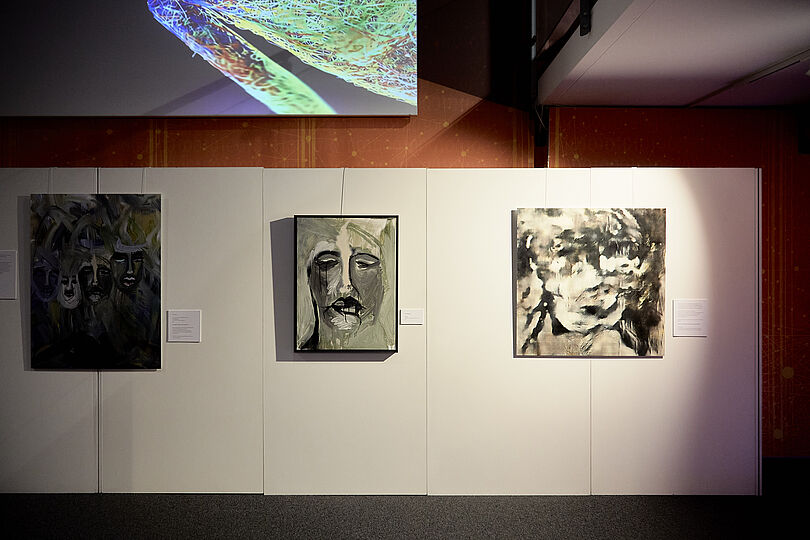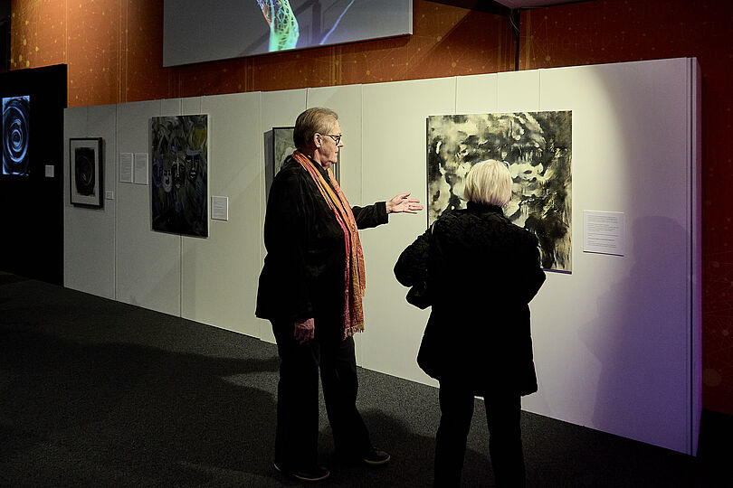 Zeichnungen und Malereien der Künstlerin wurden auf überraschende Weise präsentiert, multimedial neu interpretiert und dadurch gleichzeitig weiterentwickelt - beispielsweise als Videoinstallation, Hologramm oder durch eine KI völlig frei erweitert. Eine KI, die von Sebastian Trella ausschließlich mit künstlerischen Arbeiten von Lena Reifenhäuser trainiert wurde, kreiert sogar völlig neue Bilder im Stil der Künstlerin. Eines dieser Bilder wurde im Deutschen Museum Bonn im Rahmen des Aktionswochenendes zum ersten Mal der Öffentlichkeit vorgestellt.