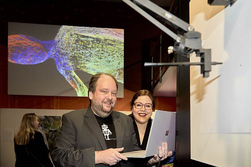 Lena Reifenhäuser und Sebastian Trella mit MANUEL(L) Bild: Deutsches Museum | Eric Alexander Lichtenscheidt