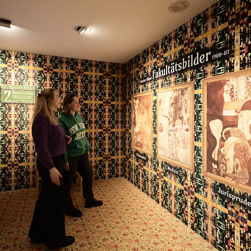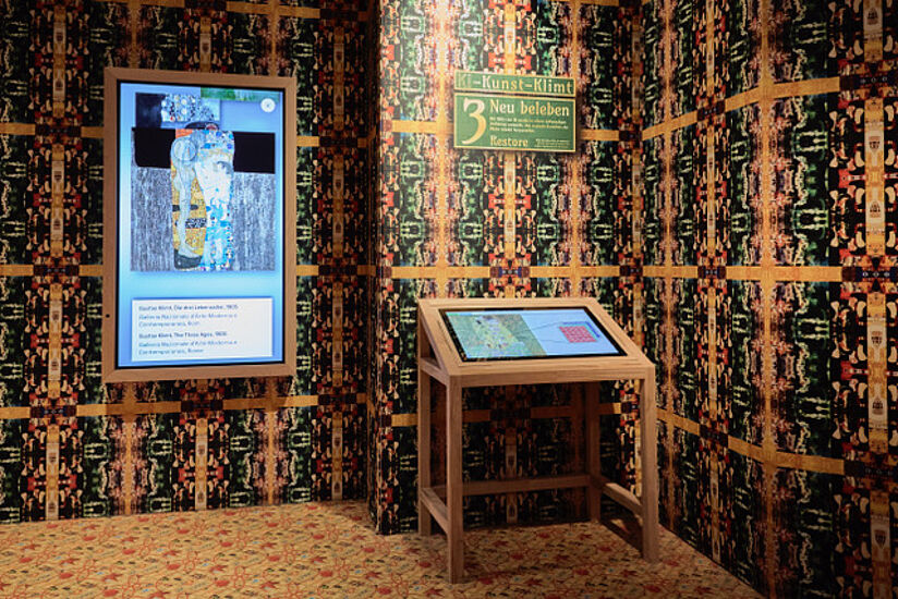 Das »KI:Kabinett« ist die neue dauerhafte Wechselausstellung im Deutschen Museum Bonn – Forum für Künstliche Intelligenz. Die vier atmosphärisch gestalteten Räume behandeln wechselnde Schwerpunktthemen aus dem Spannungsfeld zwischen Kunst und KI. Den Anfang macht die Kabinettausstellung »Klimt – KI – Kunst« über den Einsatz von Künstlicher Intelligenz bei der Rekonstruktion der Farbgebung von drei verlorenen Gemälden des Malers Gustav Klimt, die hier mindestens bis zum Jahresende 2026 zu sehen sein wird.