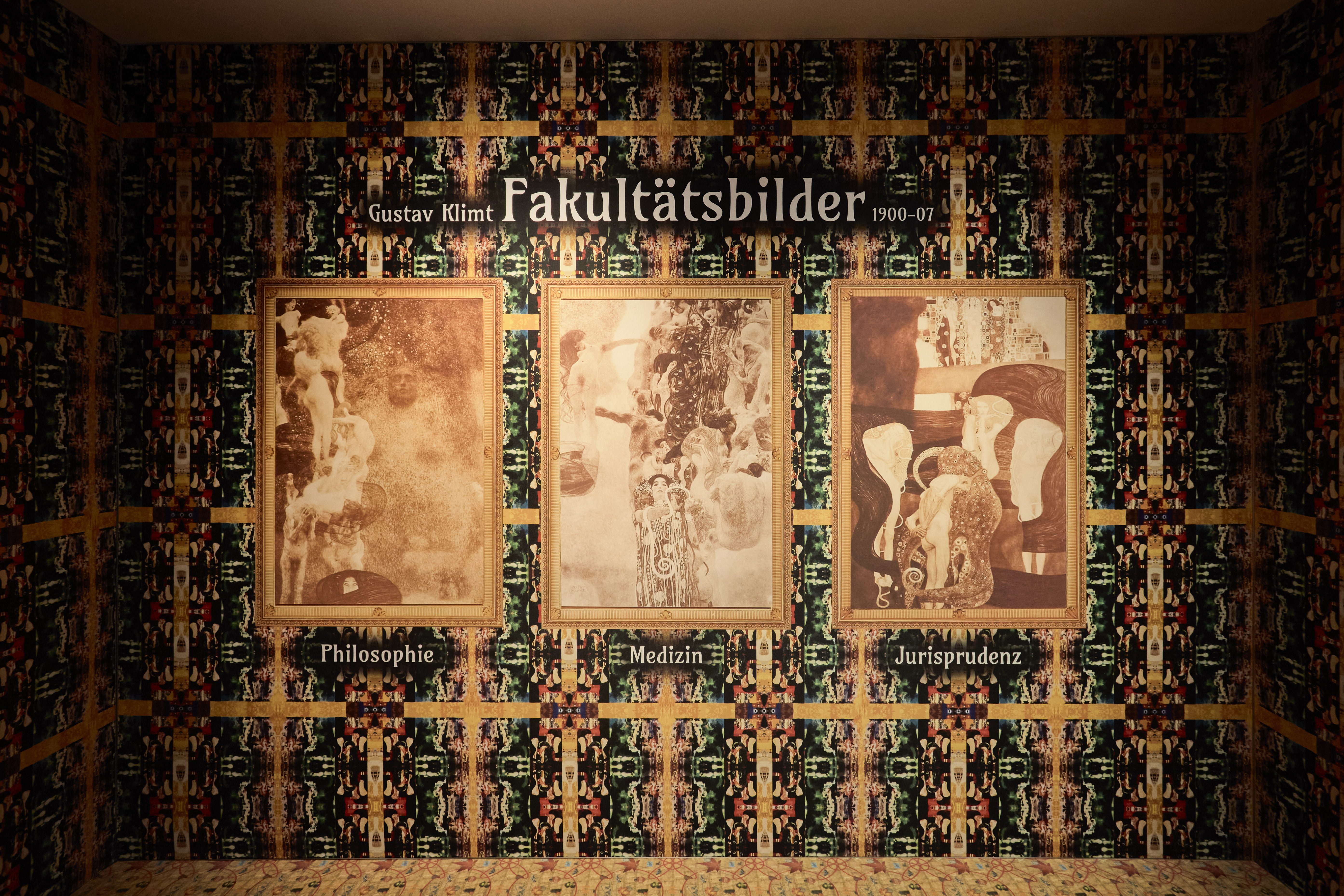 Die Ausstellung zeigt, wie Mensch und KI gemeinsam dem Farbgeheimnis der Fakultätsbilder des Malers Gustav Klimt auf die Spur kamen