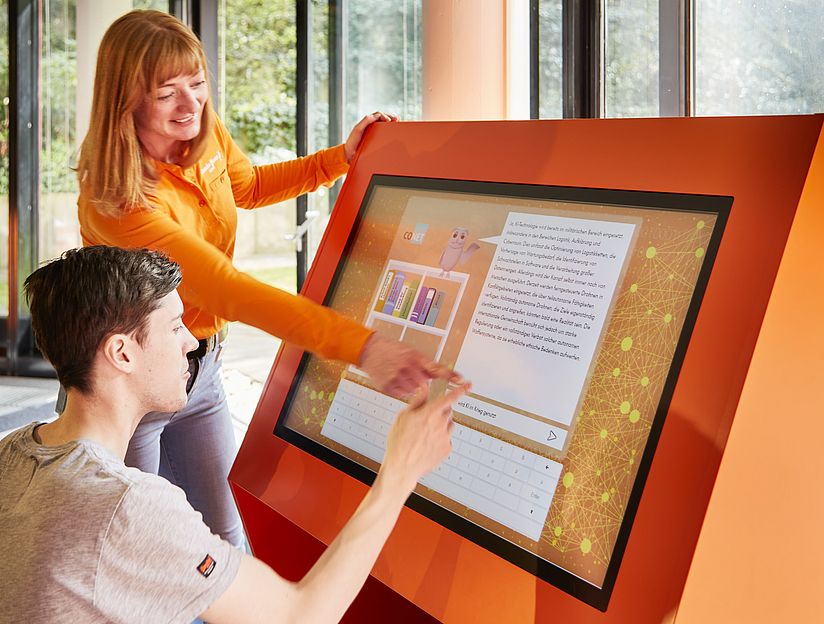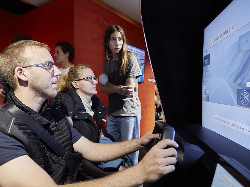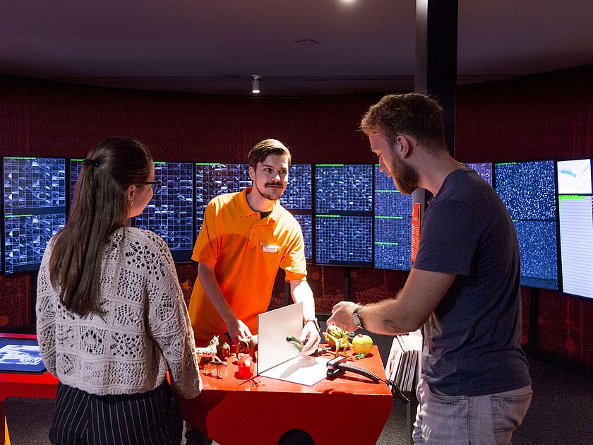 Unsere Museotainer und Museotainerinnen laden Sie während Ihres Museumsbesuches zu den KI:ckstarts ein: moderierte Einführungsrunden in kleinen Gruppen rund um die Mission KI.