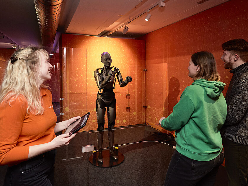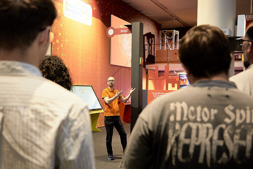 Um die Erlebnisräume mit Leben zu erfüllen, bieten unsere Museotainer und Museotainerinnen die KI:ckstarts an – kurze dialogische Rundgänge, die einen verständlichen Zugang zur Welt der Künstlichen Intelligenz eröffnen.