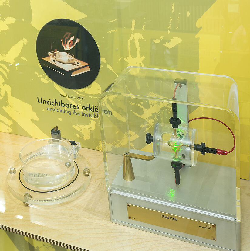 Hinter und neben dem Synchrotron geht es um das Lebenswerk des Physiknobelpreisträgers Wolfgang Paul (1913 – 1993). Unter seiner Leitung entwickelte sich das Physikalische Institut der Universität Bonn zu einem international geachteten Forschungszentrum für Teilchenphysik. Paul war ein intuitiver Physiker mit originellen Ideen. So übertrug er das Prinzip der Bahnstabilisierung der Elektronen im Synchrotron auf das Feld der Massenspektrometrie und entwickelte über den Zwischenschritt des elektrischen Massenfilters einen Käfig für geladene Teilchen. Für diesen Ionen-Käfig wurde Paul 1989 mit dem Nobelpreis für Physik ausgezeichnet. Paul-Fallen kommen vor allem als Bestandteile von Massenspektrometern zur chemischen Analyse von Stoffen zum Einsatz. Aber auch eine Entwicklungsrichtung der Quantencomputer basiert auf Paul-Fallen.