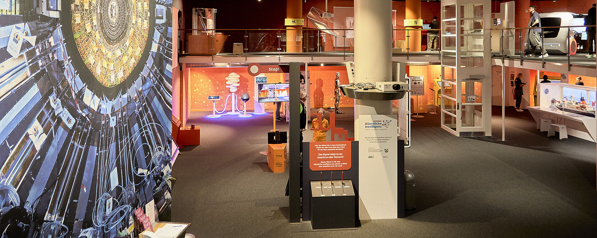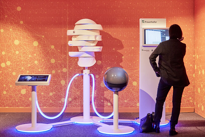 In diesem Erlebnisraum stellen wir verschiedene Anwendungsgebiete Künstlicher Intelligenz vor. Ambivalenten Entwicklungen wie »Deep Fakes« stehen unwidersprochen sinnvolle Einsatzszenarien wie in der medizinischen Diagnose gegenüber. Intensiv beleuchten wir die Frage, wie kreativ KI sein kann. Aktuelle Schwerpunkte sind daher Beispiele generativer KI, also Text-Bild-Generatoren wie ChatGPT oder Stable Diffusion. Die KI Anwendungen zeigen nicht nur forschungsorientierte Beispiele, sondern auch die Einsatzmöglichkeiten im Alltag.