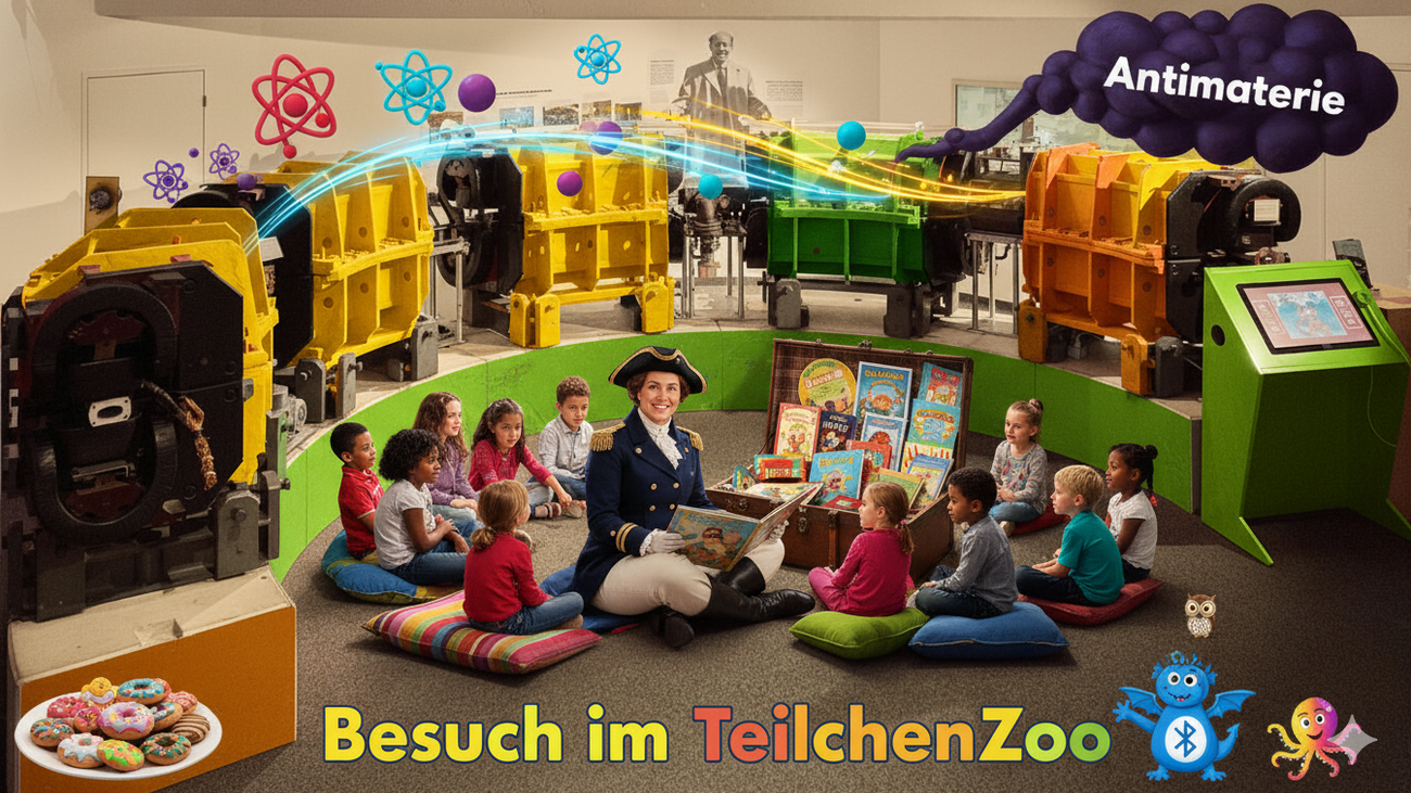 Nein, damit sind nicht die süßen Teilchen gemeint, die es in der Bäckerei gibt! Sondern es geht um die winzigen kleinen Teilchen, aus denen das riesige Universum, unsere Welt, unsere Körper und die Blätter der Pflanzen bestehen. Selbst die exotischen Teilchen der Dunklen Materie könnt ihr im Teilchenzoo des Deutschen Museums Bonn entdecken! Wenn ihr also Z-Bosonen, Tau-Neutrinos oder Gluonen begegnen möchtet und wissen wollt, wie man etwas so Winziges überhaupt einfangen kann, dann kommt in den wuseligen Teilchenzoo. Käpt´n Book wird mit euch einen Photon-Twist tanzen, Nebelkammern detektivisch erkunden und zeigen, dass ein Top-Quark keine Milchspeise ist. Also auf ins Museum, wenn Käpt´n Book gemeinsam mit Proton, Elektron und Neutron vor dem Teilchenbeschleuniger zum fröhlichen Familienfest mit spannenden Lesungen einlädt!