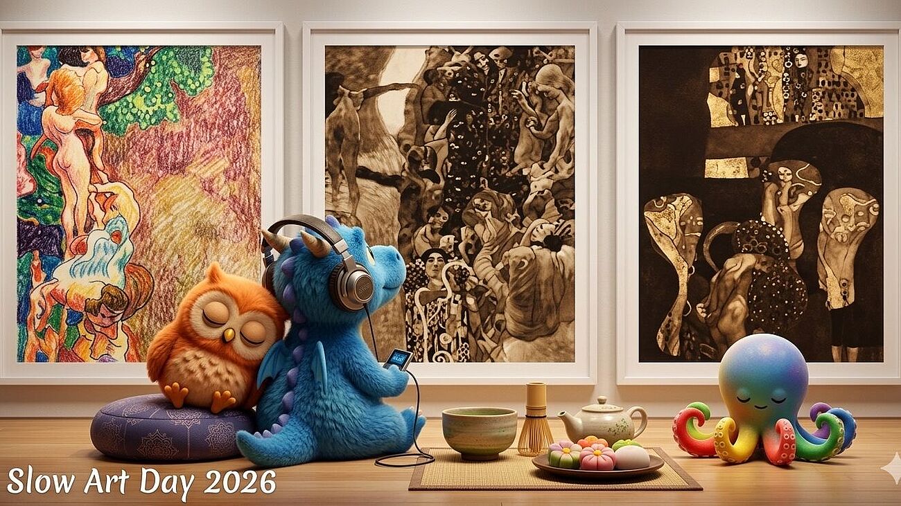 Der internationale »Slow Art Day« ist ein jährlich stattfindendes Event, das Menschen dazu anregt, Kunst in Museen und Galerien bewusst langsam und intensiv zu betrachten. Der Tag soll zeigen, dass jeder Kunst ohne Expertenwissen genießen und verstehen kann.