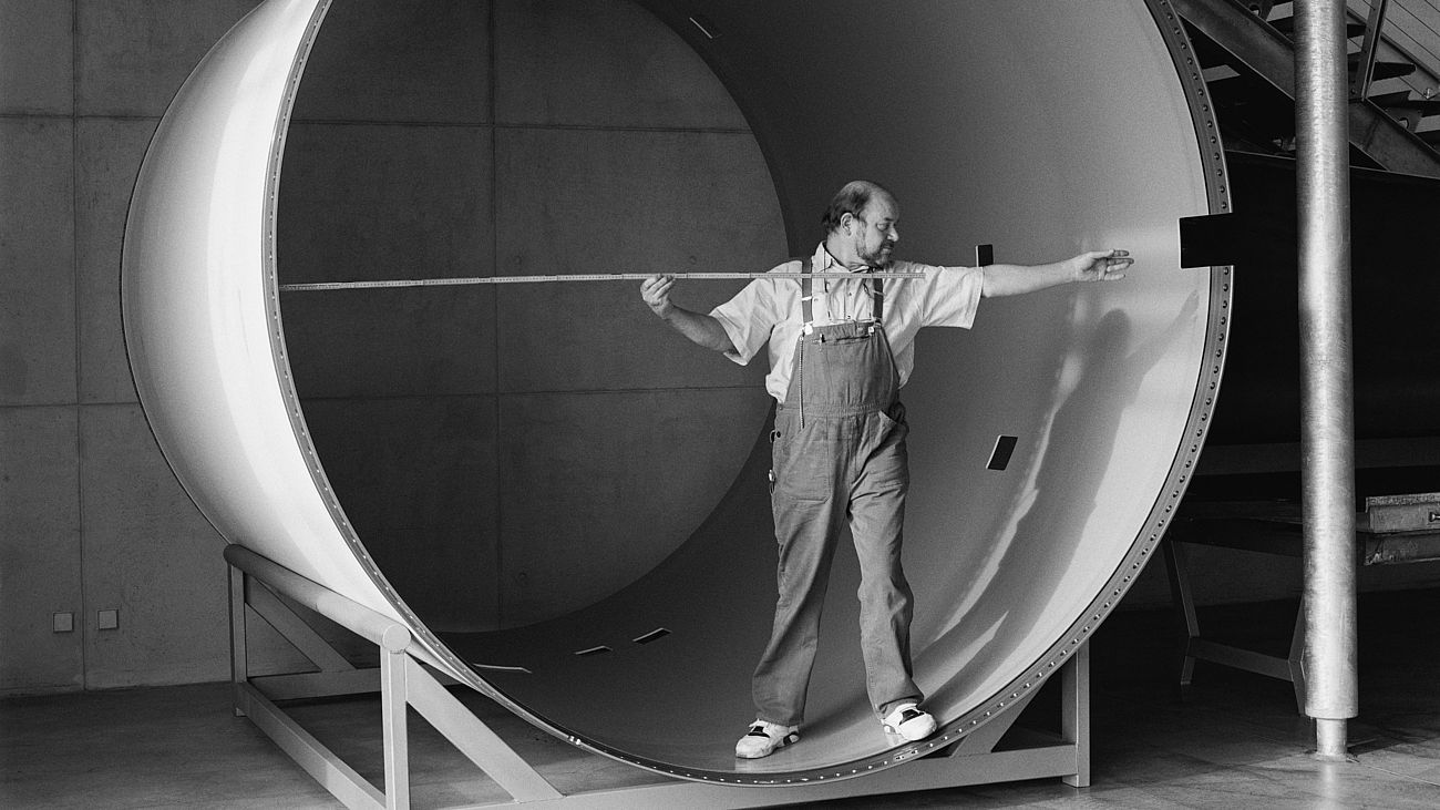 A complete booster casing consists of seven tube-shaped segments. One of them is the exhibit on display.