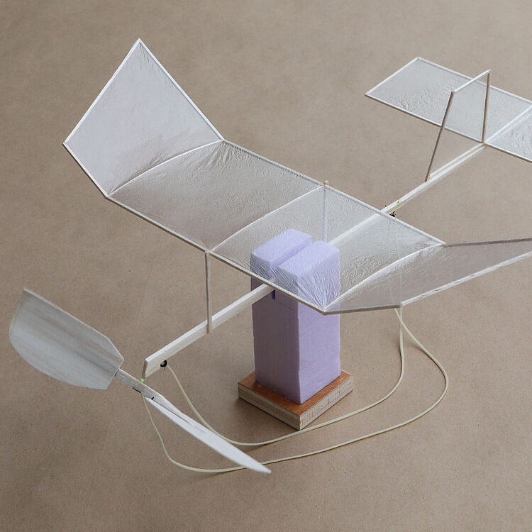 Der Bau dieses Saalflugmodells der nationalen Klasse TH 30 (TH: Turnhalle) führt ein in die Grundlagen des Saalflug-Leichtbaus mit Balsaholz, der Optimierung der statischen und dynamischen Modelleinstellungen, den Eigenschaften des Gummimotors und in die fliegerische Handhabung eines Saalflugmodells mit Gummimotor. Bei einer Spannweite von 30 cm, einer Modellmasse von minimal 1,6 Gramm, einem Paddelpropeller und einer freien Masse des Gummimotors im Bereich von 0,7 bis 1 Gramm ergeben sich Flugzeiten bis zu 3 Minuten. Die Workshop-Teilnehmer werden beim Bau von erfahrenen Modellflugzeugbauern angeleitet und unterstützt. Die gebauten Modelle werden anschließend in der Ausstellungshalle eingeflogen und optimiert.