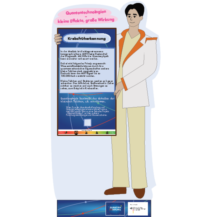 Die quantenbasierte Krebsfrüherkennung nutzt Quantentechnologien der zweiten Generation, um Tumore früher und präziser sichtbar zu machen. Zentral ist das Verfahren der Hyperpolarisation: Diagnostisch relevante Moleküle werden dabei so vorbereitet, dass sie in der Magnetresonanztomographie (MRT) ein bis zu 100.000-fach stärkeres Signal liefern – vergleichbar mit einem Verstärker, der ein Flüstern in einen klar hörbaren Ton verwandelt. Die so erzeugten Bilder könnten Tumorzellen sichtbar machen, bevor sie mit heutigen Verfahren erkennbar sind, und zugleich Einblicke in den Zellstoffwechsel liefern.
