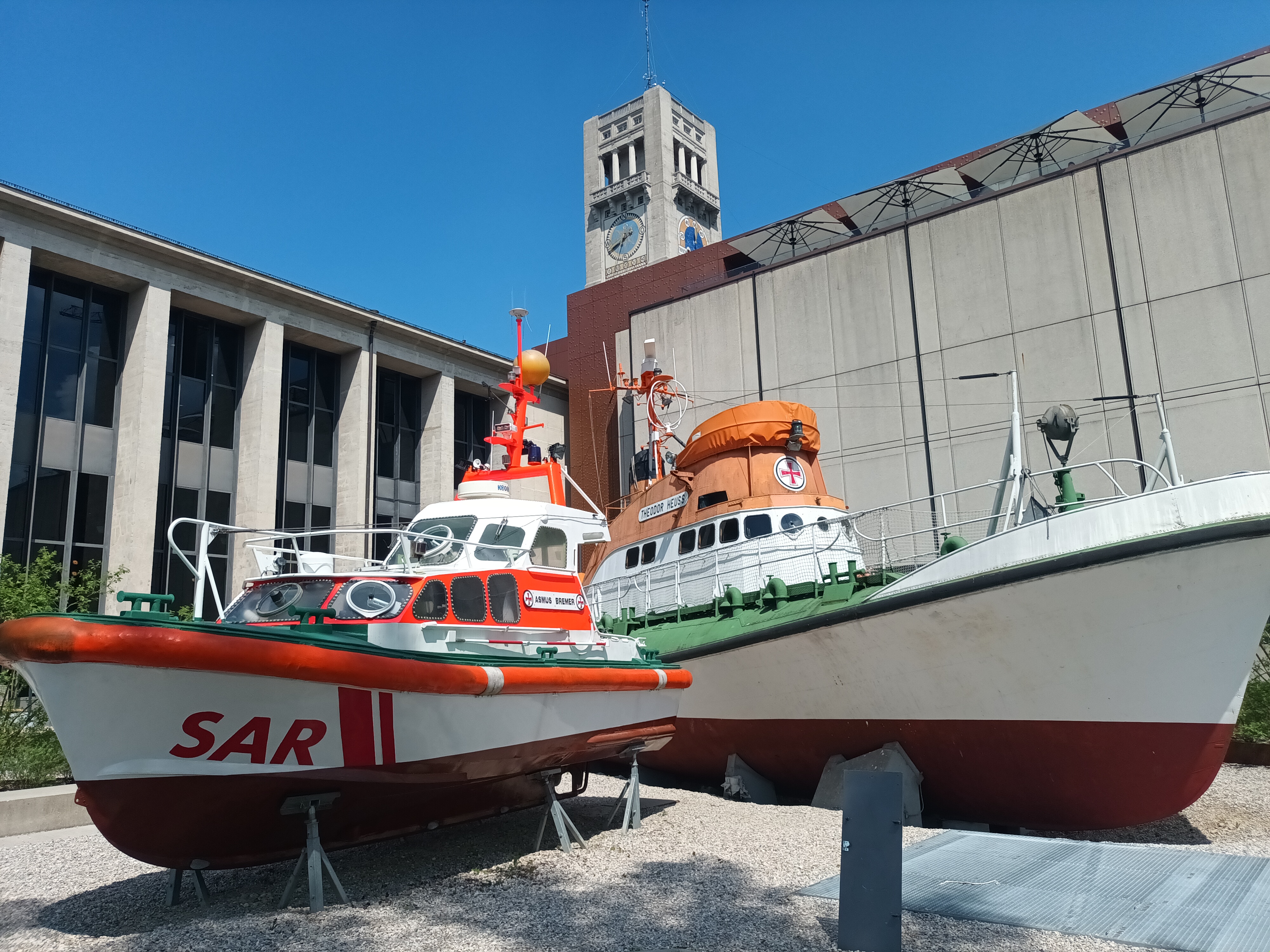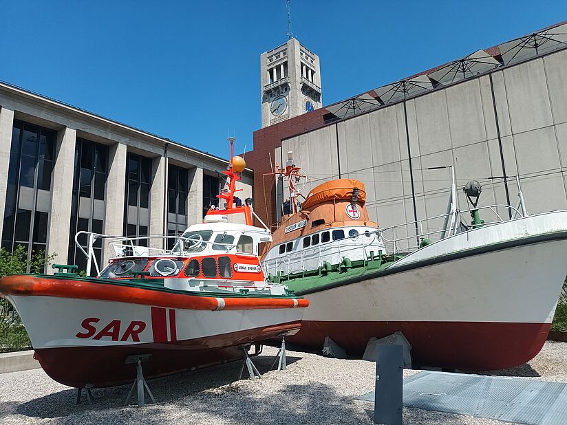 Mit FFK-Hilfe wurde auch der Seenotrettungskreuzer “Theodor Heuss” (re.) überholt, damit wieder Führungen darauf stattfinden können.