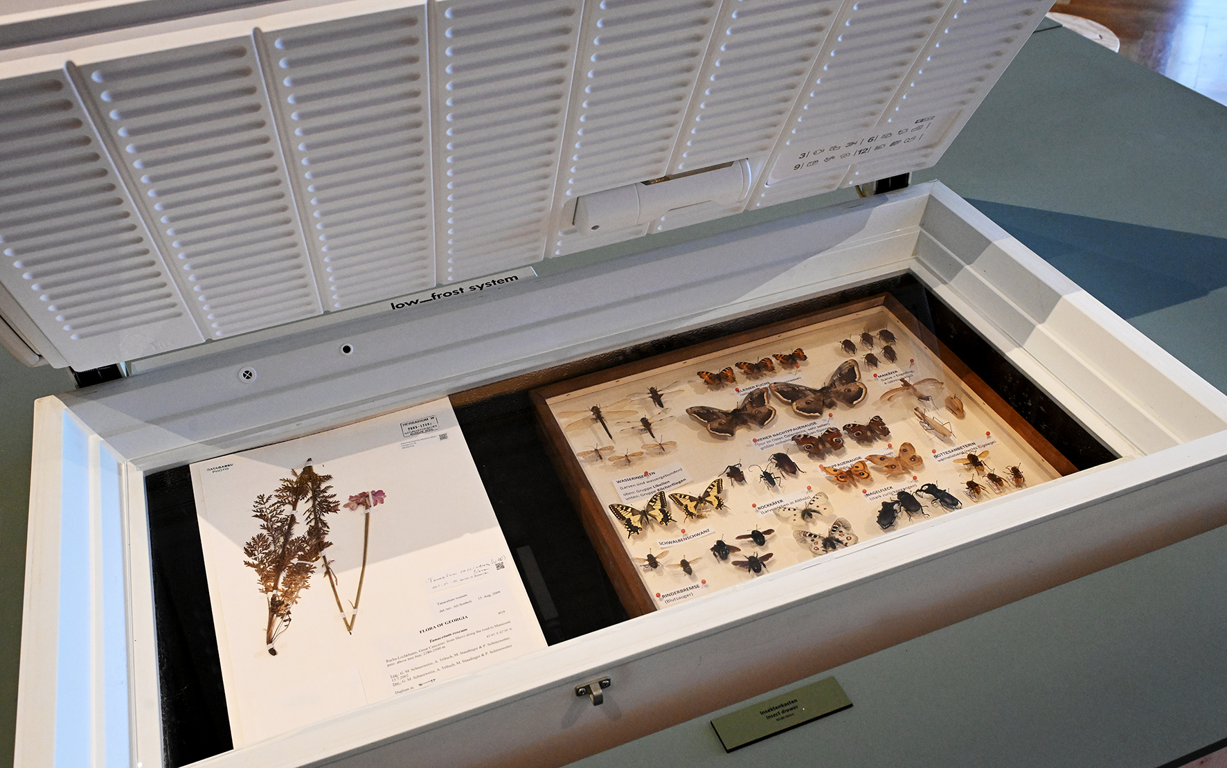Pflanzen und Insekten in einer Tiefkühltruhe: In der Sonderausstellung werden auch Schutzmaßnahmen gegen Schädlingsbefall gezeigt.