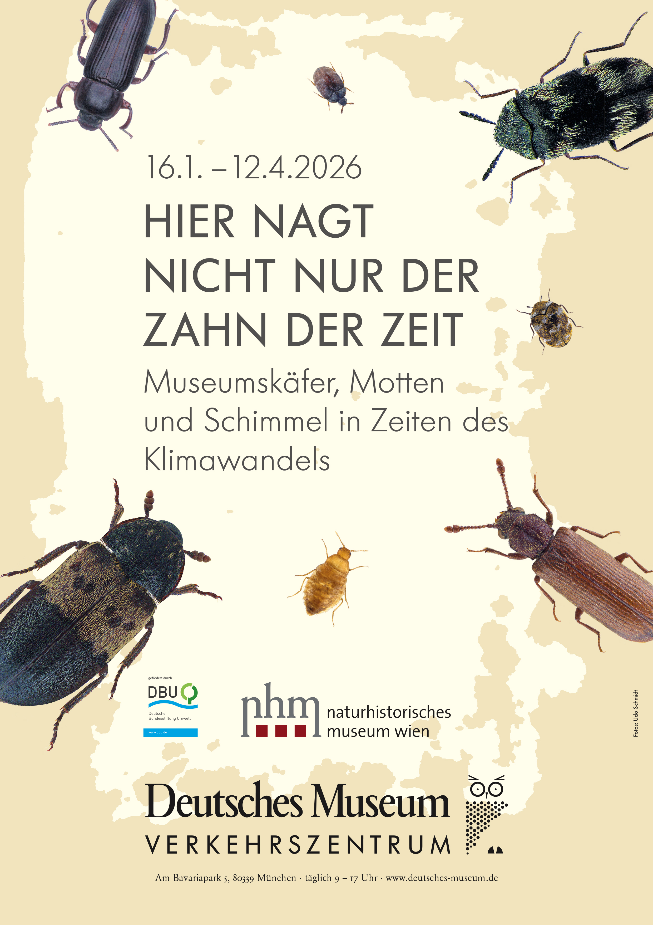 Pascal Querner, Biologe und Experte für Museumsschädlinge am Naturhistorischen Museum, der die Ausstellung konzipiert hat, sagt: „Auch der Klimawandel spielt für den Schädlingsbefall eine Rolle: Durch höhere Temperaturen vermehren sich die Tierchen schneller, in historischen Museumsgebäuden bildet sich durch die veränderten Klimabedingungen verstärkt Schimmel. Wir stehen in den Museen vor der Herausforderung, Hunderttausende Objekte langfristig vor einem Befall zu bewahren. Und viele Objekte sind so selten oder gar einzigartig, dass sie nicht ersetzt werden können.“