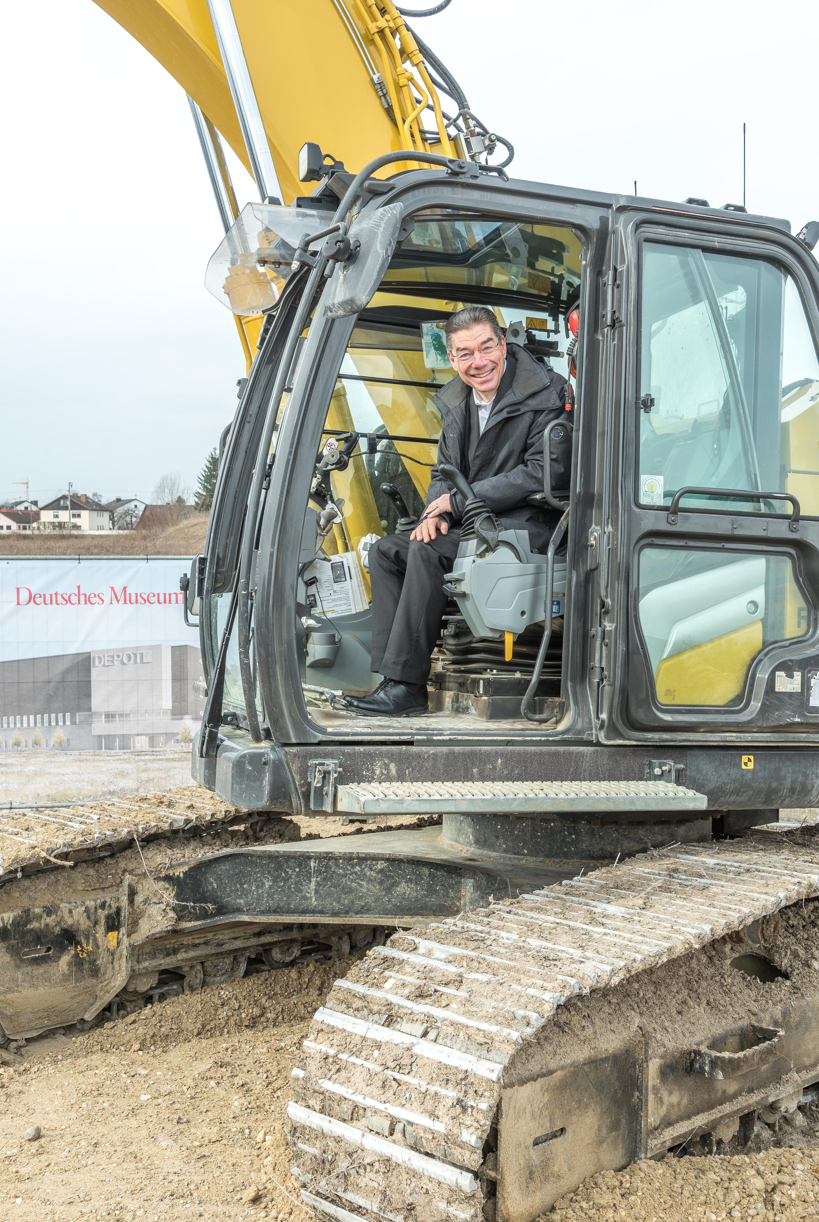 Generaldirektor Michael Decker durfte sich ans Steuer des Baggers setzen.