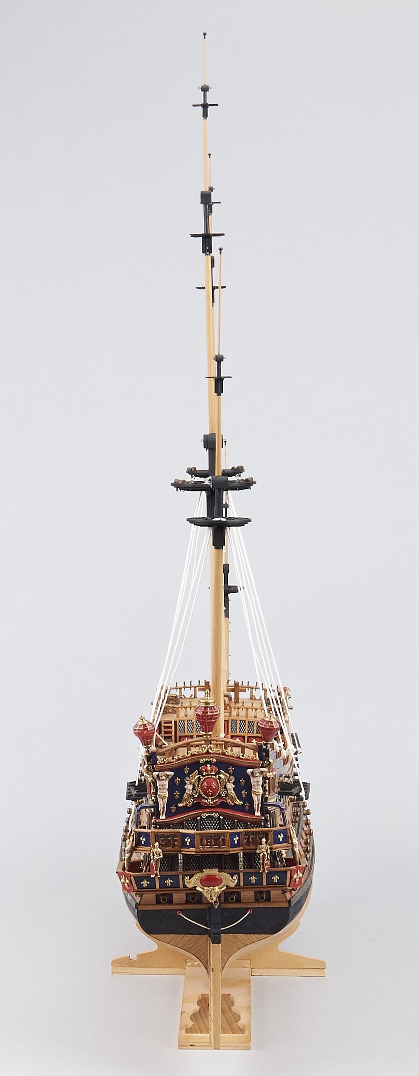 Bei dem Vorbild des Modells handelt es sich um ein Admiralitätsschiff ersten Ranges des französischen Königs Ludwig XIV. von ca. Ende des 17. Jahrhunderts mit drei Masten, drei Decks und 84 Kanonen. Es weist die zu der Zeit typischen Elemente des repräsentativen Schiffbaus in Frankreich auf: Galionsfigur, Hecklaternen, Erscheinungsbalkon, königliches Wappen, Fleur-de-Lys-Symbolik, ikonographisches Programm sowie die an die Landarchitektur angelehnten Stilmittel wie Karyatiden und Etagen.