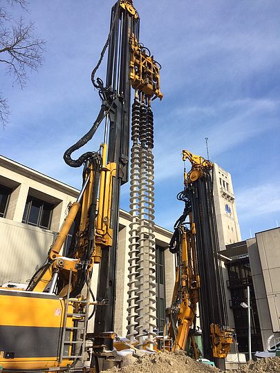 Der Schneckenbohrer kam bei den Arbeiten für die Errichtung einer Dichtwand zum Hochwasserschutz zum Einsatz.