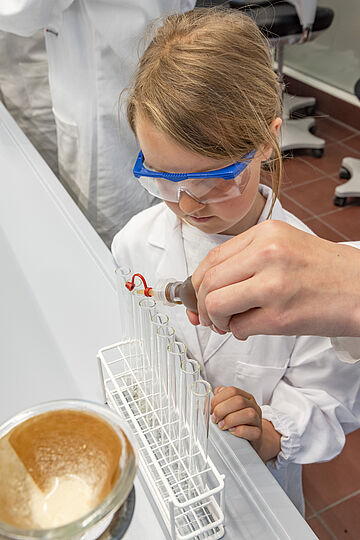 Das Chemie-Besucherlabor bietet buchbare Angebote für Gruppen und Schulklassen an. Regelmäßig finden offene Programme statt.