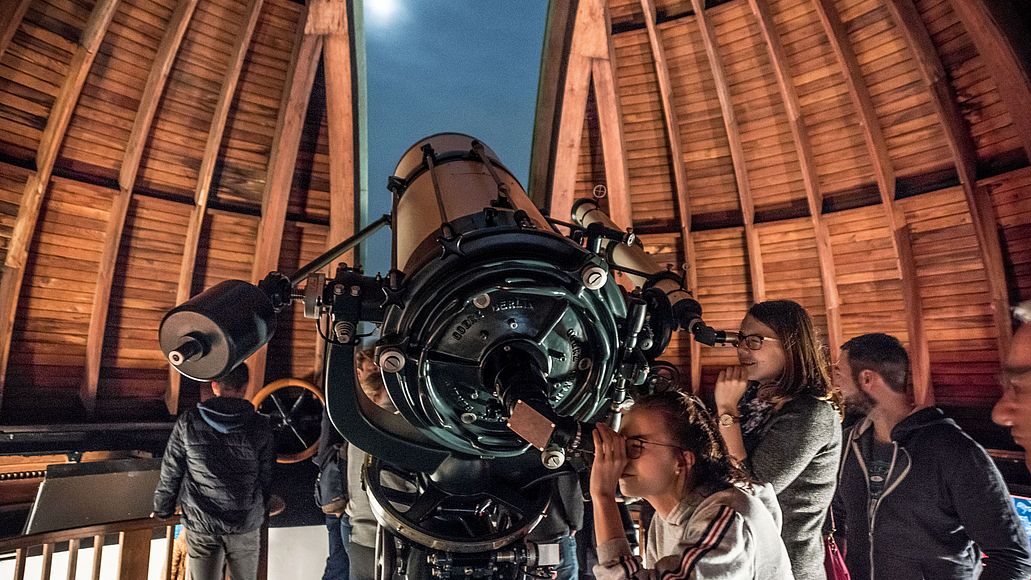 Die Kuppeln der Sternwarten auf der Museumsinsel sind von Weitem deutlich zu sehen. Die Oststernwarte ist derzeit wegen der Modernisierung geschlossen. Die Weststernwarte ist jetzt wieder regelmäßig zugänglich.