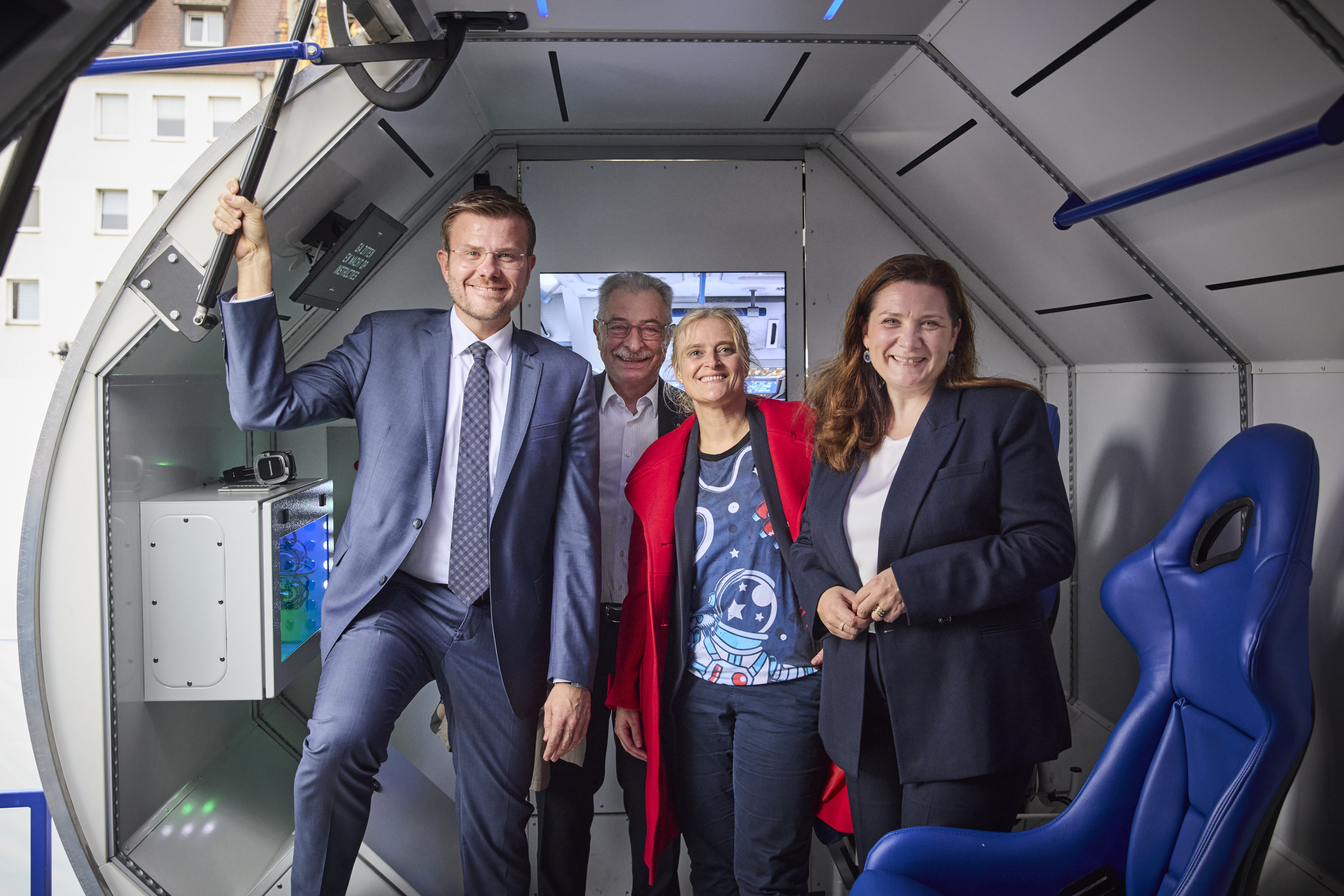Cornelia Trinkl, Schul- und Sportreferentin der Stadt Nürnberg betont die Möglichkeiten, die sich Schulen eröffnen. „Vom Hauptmarkt direkt ins Weltall. In den kommenden drei Tagen schlüpfen circa 200 Schülerinnen und Schüler dank VR-Erlebnis in die Rollen von echten Astronauten. Für unsere Schulen ist dieses Bildungsangebot eine galaktische Möglichkeit, um die Schülerinnen und Schüler für die Themen Weltall, Raumfahrt, Umweltschutz sowie ihre Bedeutung für die Gesellschaft zu begeistern.“