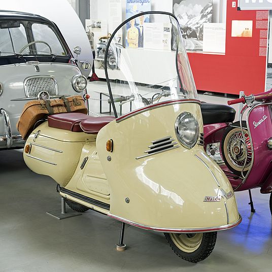 Blick in den Ausstellungsbereich Reisen im Automobilzeitalter. Bild: Deutsches Museum